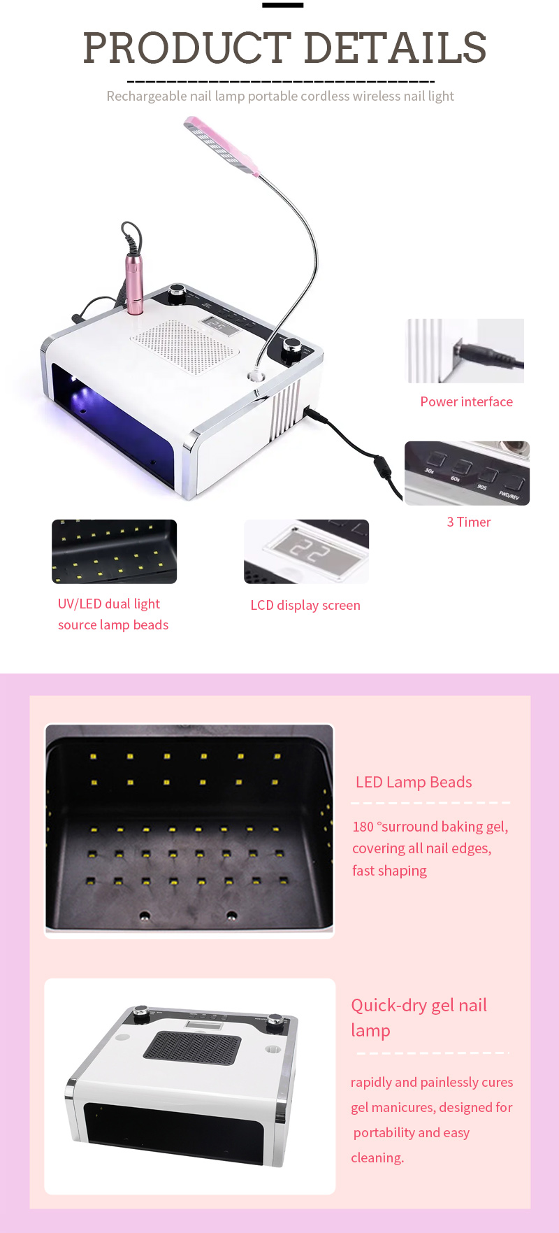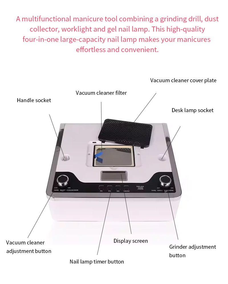 Wielofunkcyjna lampa do paznokci 4 w 1 zapewnia równomierne wysychanie kleju bez skurczu. Podwójne źródła światła zapewniają delikatne ogrzewanie, aby zapobiec przebarwieniom dłoni i zmęczeniu oczu, odpowiednie zarówno dla dłoni, jak i stóp, zapewniając niezwykle szybkie rezultaty suszenia.
