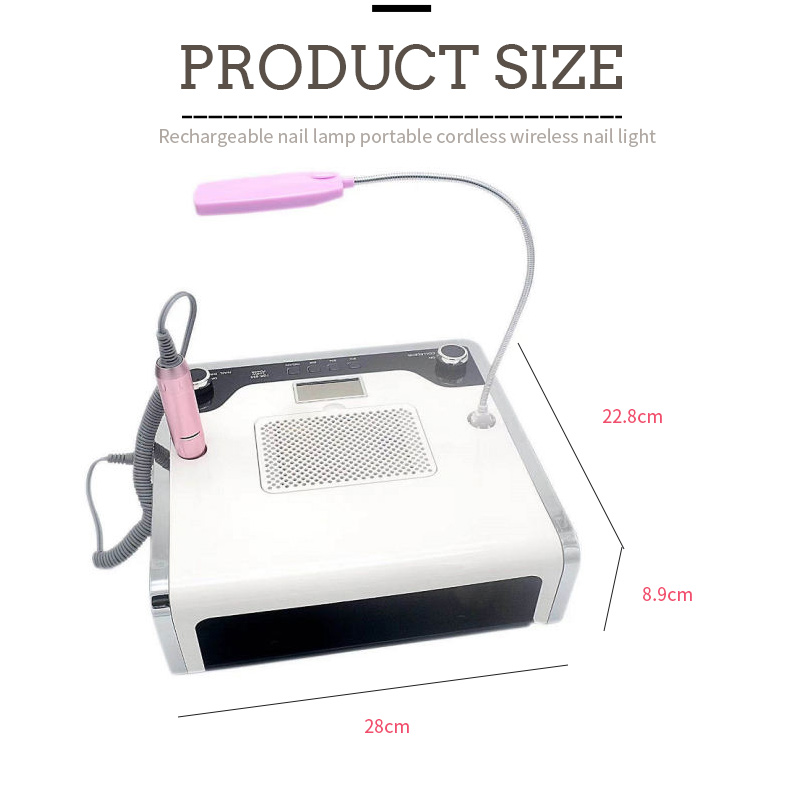 Wymiary tej wielofunkcyjnej lampki do paznokci 4 w 1 to 280 mm długości, 228 mm szerokości i 89 mm wysokości, przy dużej pojemności i możliwości używania zarówno dłoni, jak i stóp, co jest bardzo wygodne.