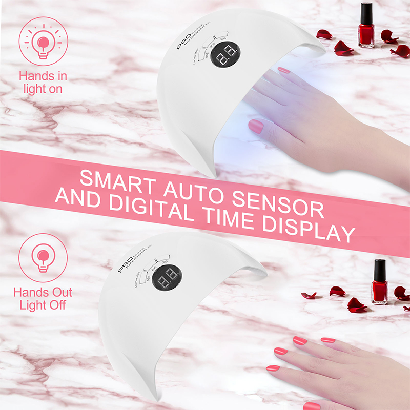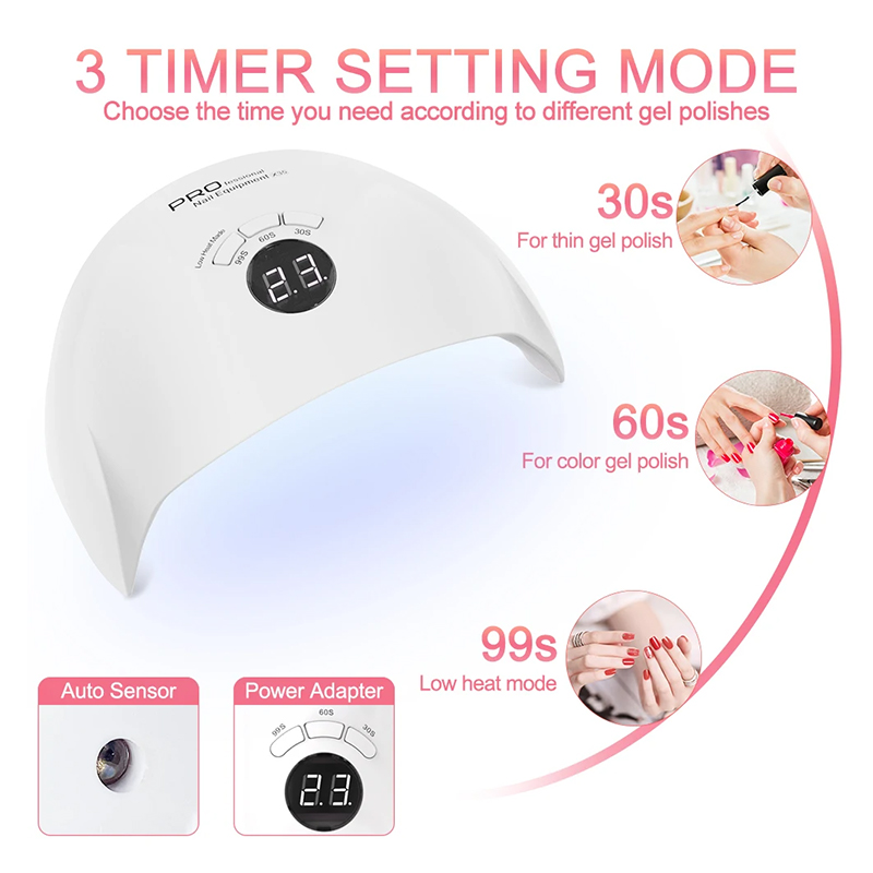 Produkt posiada 36 diod LED/UV z podwójnym źródłem światła, równomierny rozkład koralików lampowych, równomierność kleju do pieczenia bez kurczącego się kleju, podwójne źródło światła, łagodny klej do pieczenia zapobiegający zaczernieniu dłoni, nie uszkadza oczu, można stosować dłoni i stóp, efekt szybkiego suszenia jest wysoki.