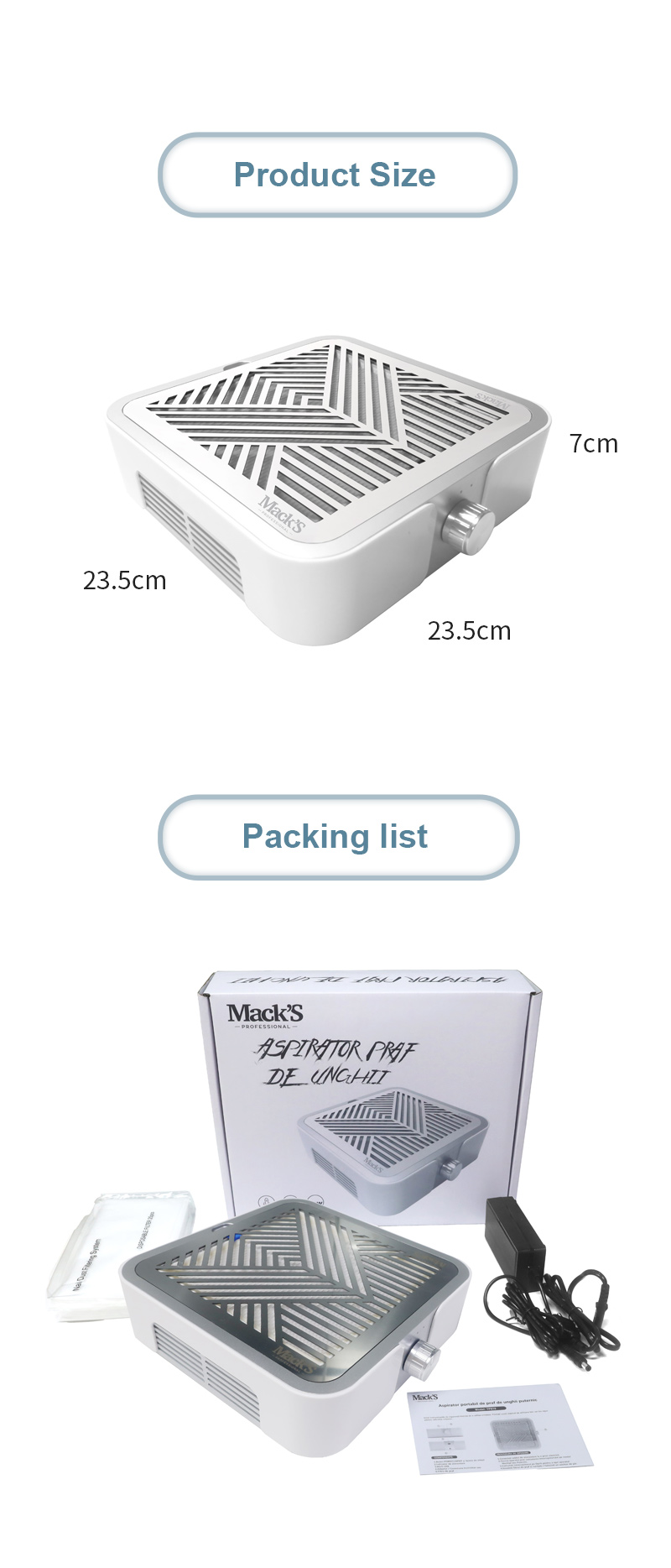 Odpylacz do paznokci o mocy 45 W, duży odsysacz z filtrem