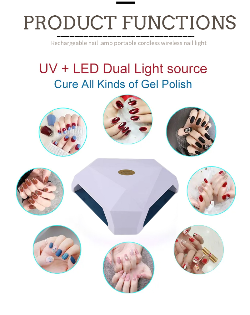 Produkt zapewnia równomierne wysychanie kleju bez skurczu. Podwójne źródła światła zapewniają delikatne ogrzewanie, aby zapobiec przebarwieniom dłoni i zmęczeniu oczu, odpowiednie zarówno dla dłoni, jak i stóp, zapewniając niezwykle szybkie rezultaty suszenia.