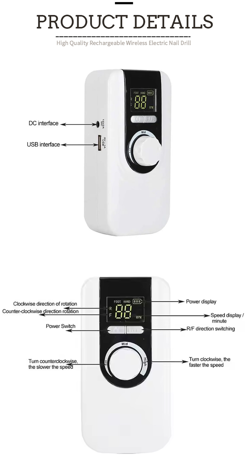 Przenośny zestaw wierteł do paznokci elektryczny z mocnym silnikiem 65 W 35 000 obr./min
