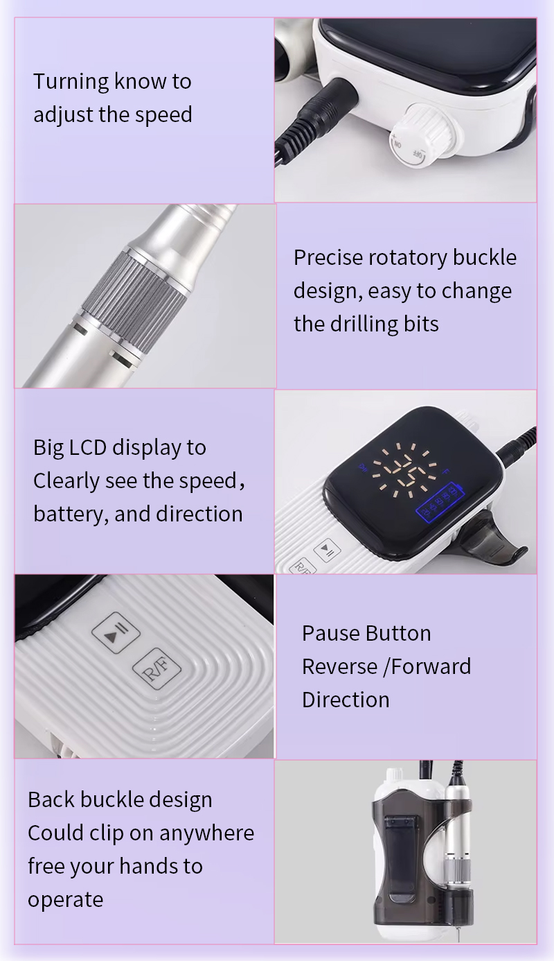 Niezbędny zestaw wierteł do paznokci elektryczny 65w 35000 obr./min