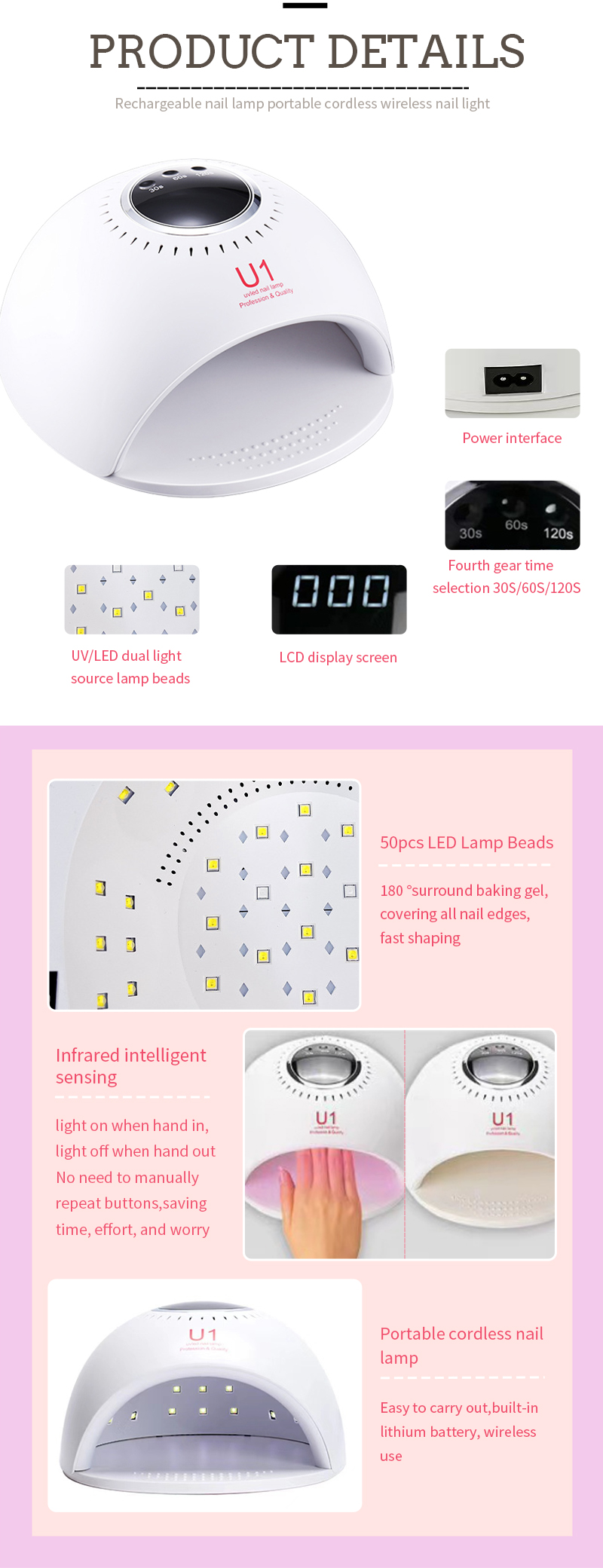 Produkt zapewnia równomierne wysychanie kleju bez skurczu. Podwójne źródła światła zapewniają delikatne ogrzewanie, aby zapobiec przebarwieniom dłoni i zmęczeniu oczu, odpowiednie zarówno dla dłoni, jak i stóp, zapewniając niezwykle szybkie rezultaty suszenia.