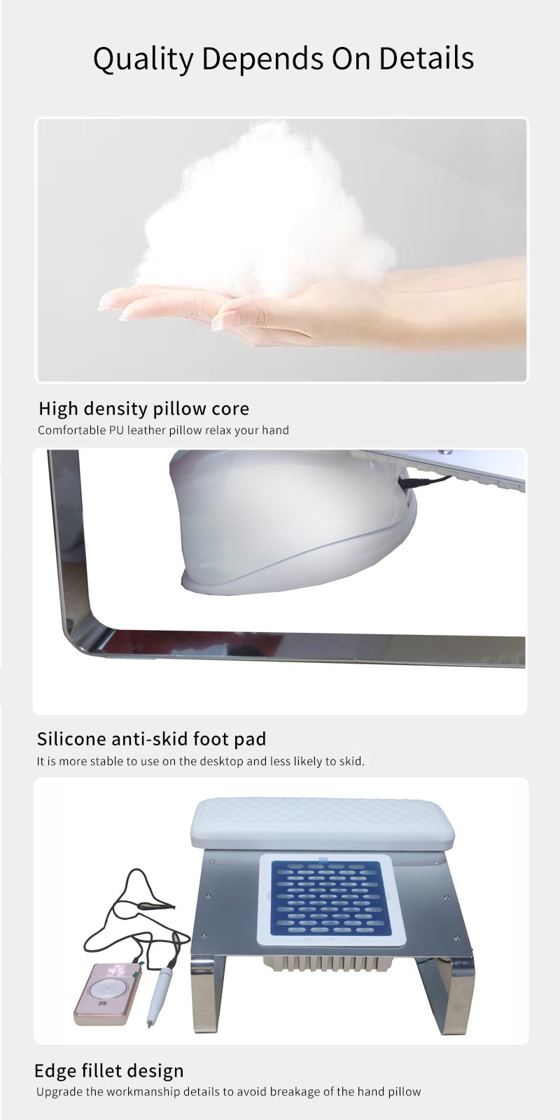 Odpylacz do paznokci o mocy 60 W z torbą wbudowaną w stół, łatwy do zebrania