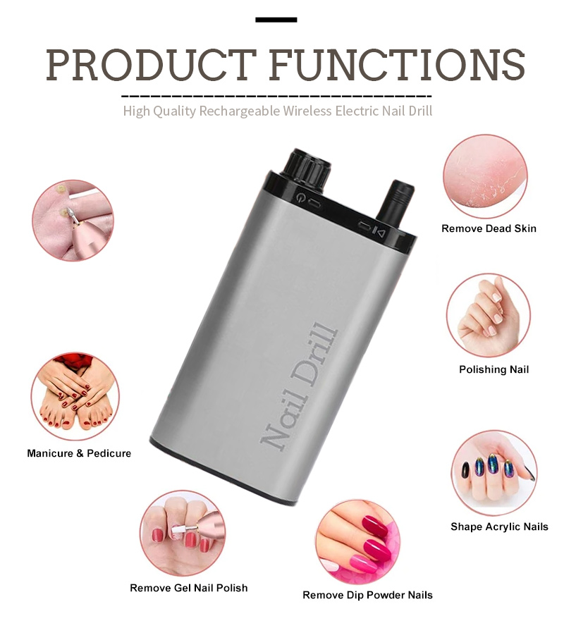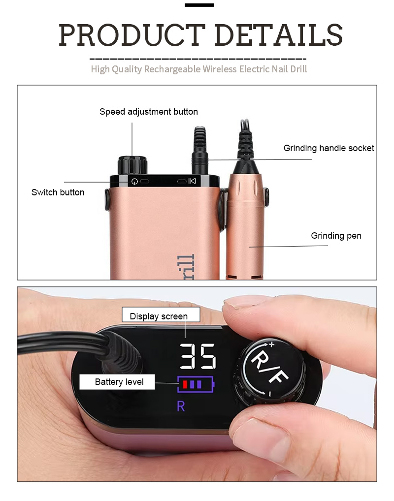 Przenośny zestaw wierteł do paznokci elektryczny z mocnym silnikiem 65 W 35 000 obr./min