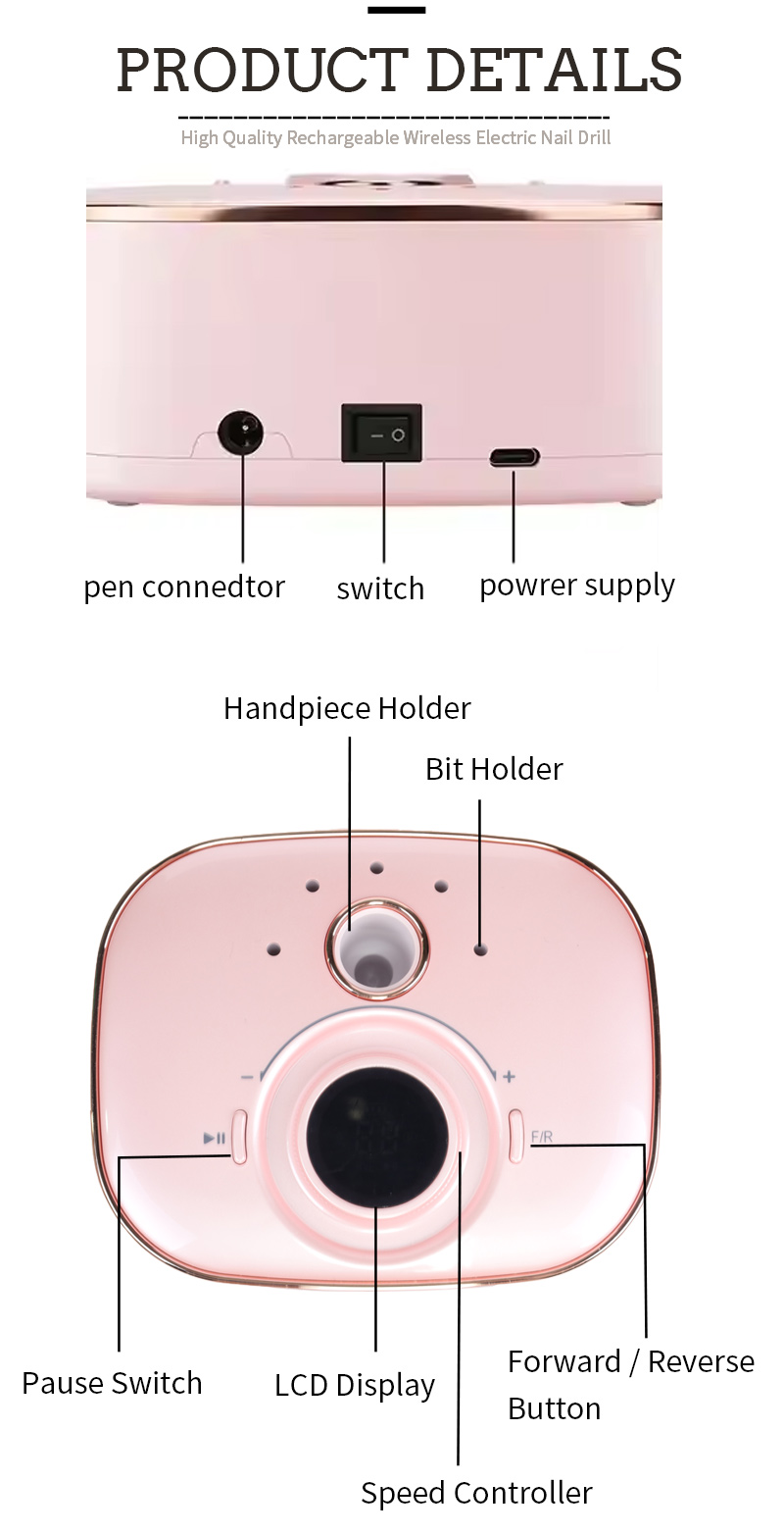 Akumulatorowa wiertarka do paznokci o dużej mocy 45 W i 40 000 obr./min