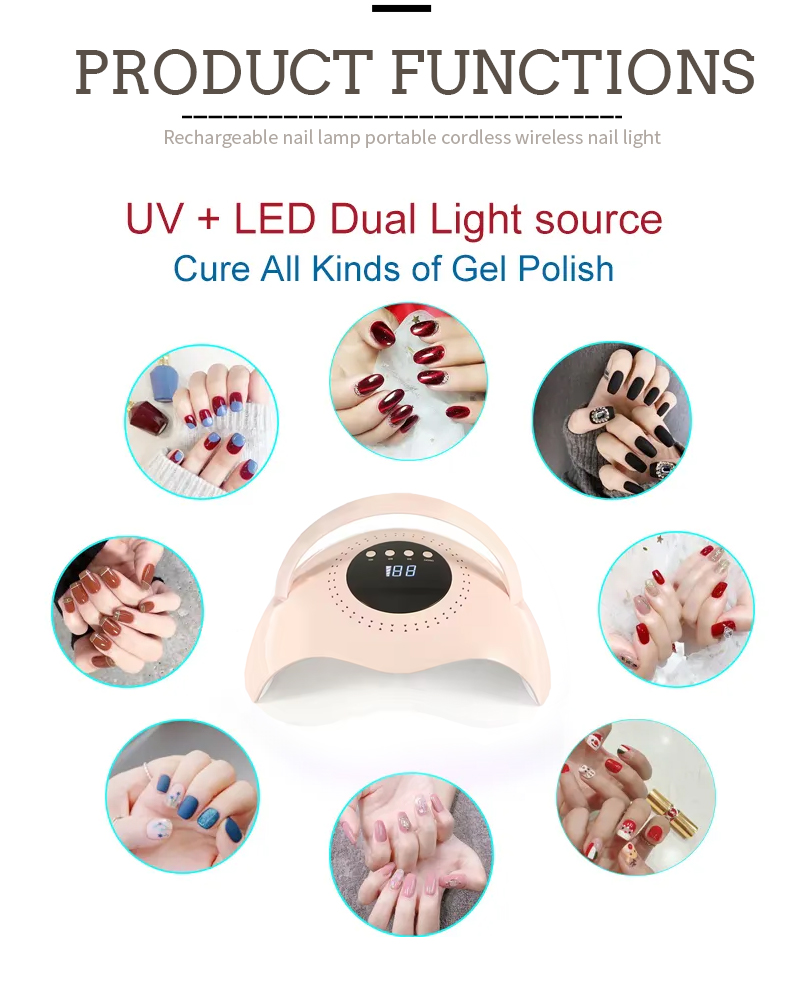 Produkt zapewnia równomierne wysychanie kleju bez skurczu. Podwójne źródła światła zapewniają delikatne ogrzewanie, aby zapobiec przebarwieniom dłoni i zmęczeniu oczu, odpowiednie zarówno dla dłoni, jak i stóp, zapewniając niezwykle szybkie rezultaty suszenia.
