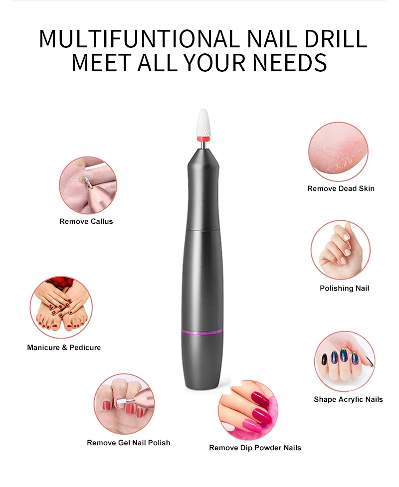 Przenośny zestaw wierteł do paznokci elektryczny z mocnym silnikiem 65 W 35 000 obr./min