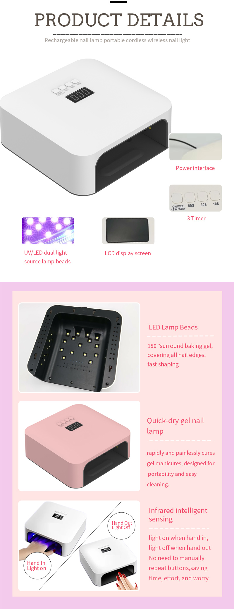 Akumulatorowa lampa do suszenia żelu do paznokci 96w