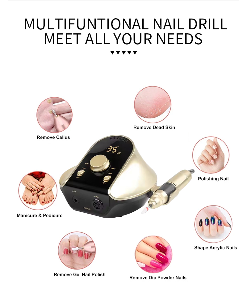 Przenośny zestaw wierteł do paznokci elektryczny z mocnym silnikiem 65 W 35 000 obr./min