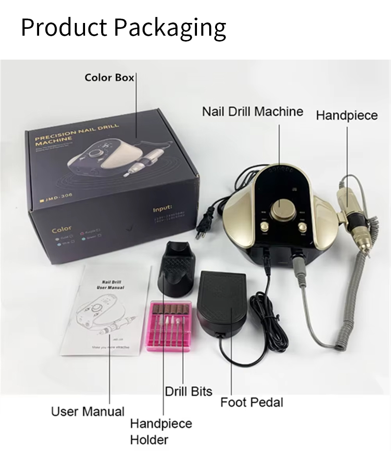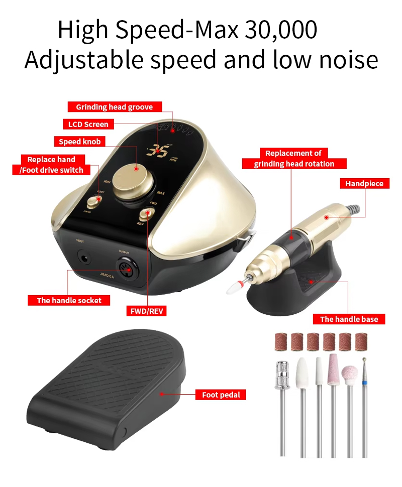 Niezbędny zestaw wierteł do paznokci elektryczny 65w 35000 obr./min
