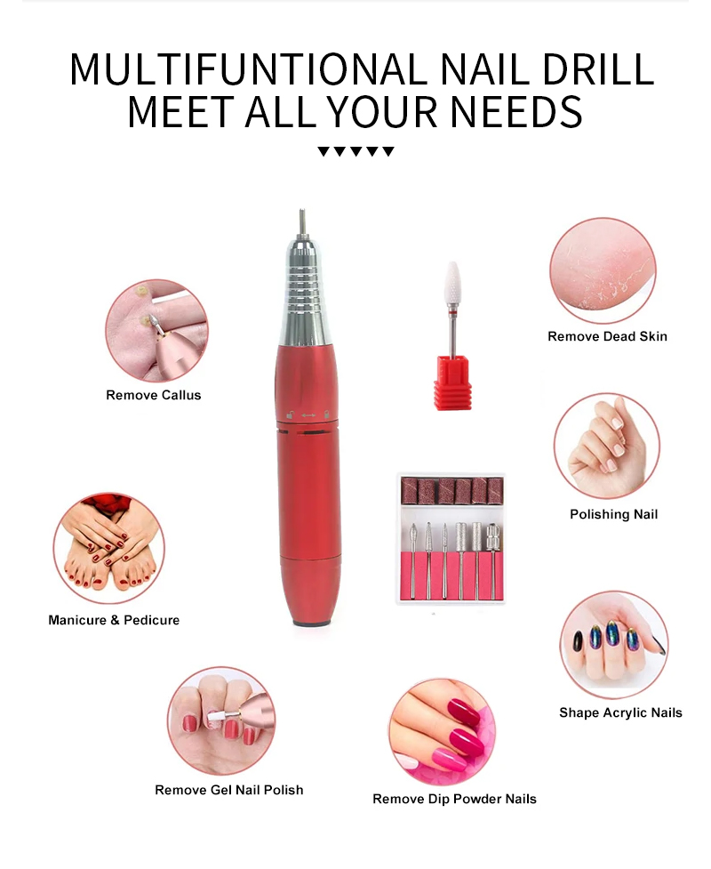 Przenośny zestaw wierteł do paznokci elektryczny z mocnym silnikiem 65 W 35 000 obr./min