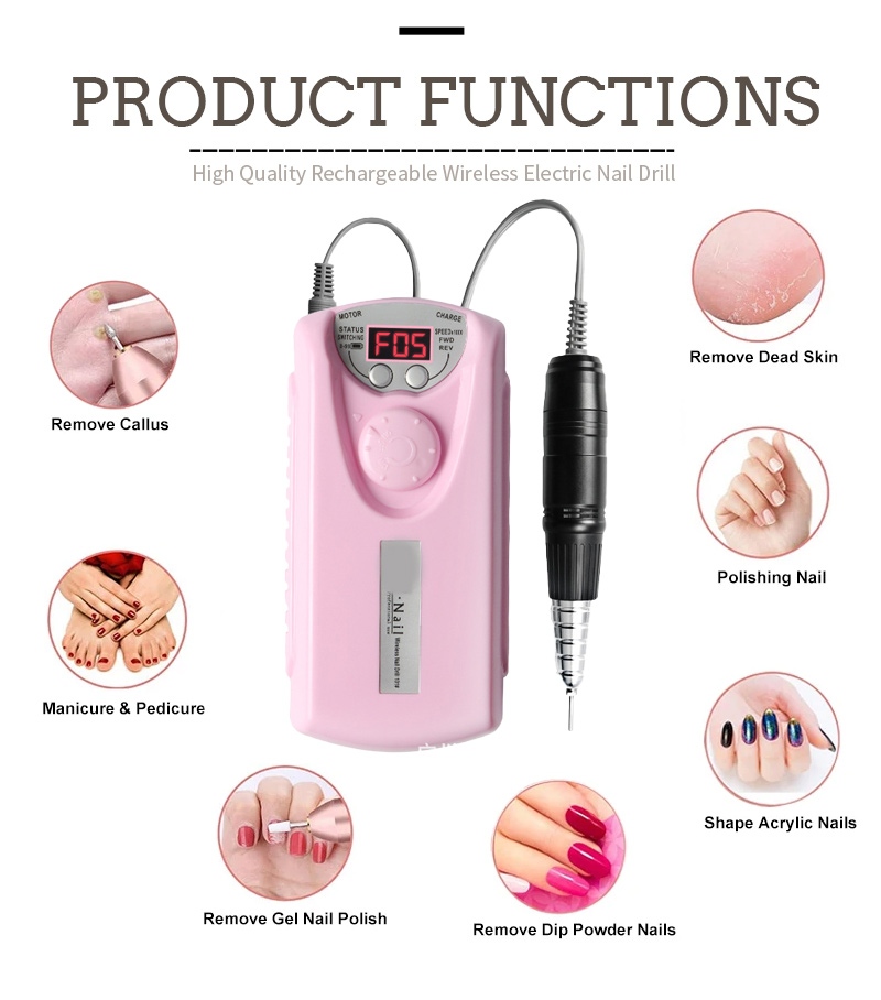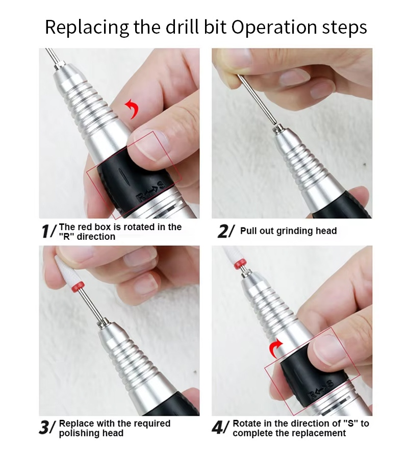 Ta profesjonalna bezprzewodowa elektryczna metoda wymiany wiertła do paznokci, to znaczy podłącz i wyciągnij, jest łatwa i wygodna, wymiana może być użyta po zakończeniu.