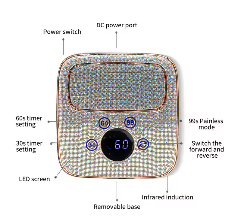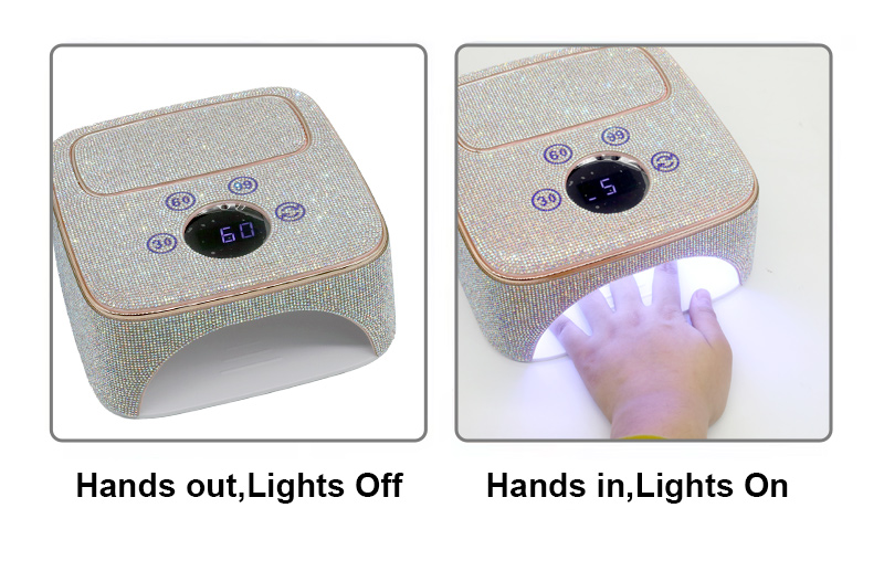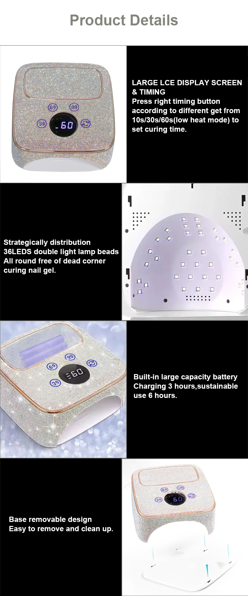 Produkt zapewnia równomierne wysychanie kleju bez skurczu. Podwójne źródła światła zapewniają delikatne ogrzewanie, aby zapobiec przebarwieniom dłoni i zmęczeniu oczu, odpowiednie zarówno dla dłoni, jak i stóp, zapewniając niezwykle szybkie rezultaty suszenia.