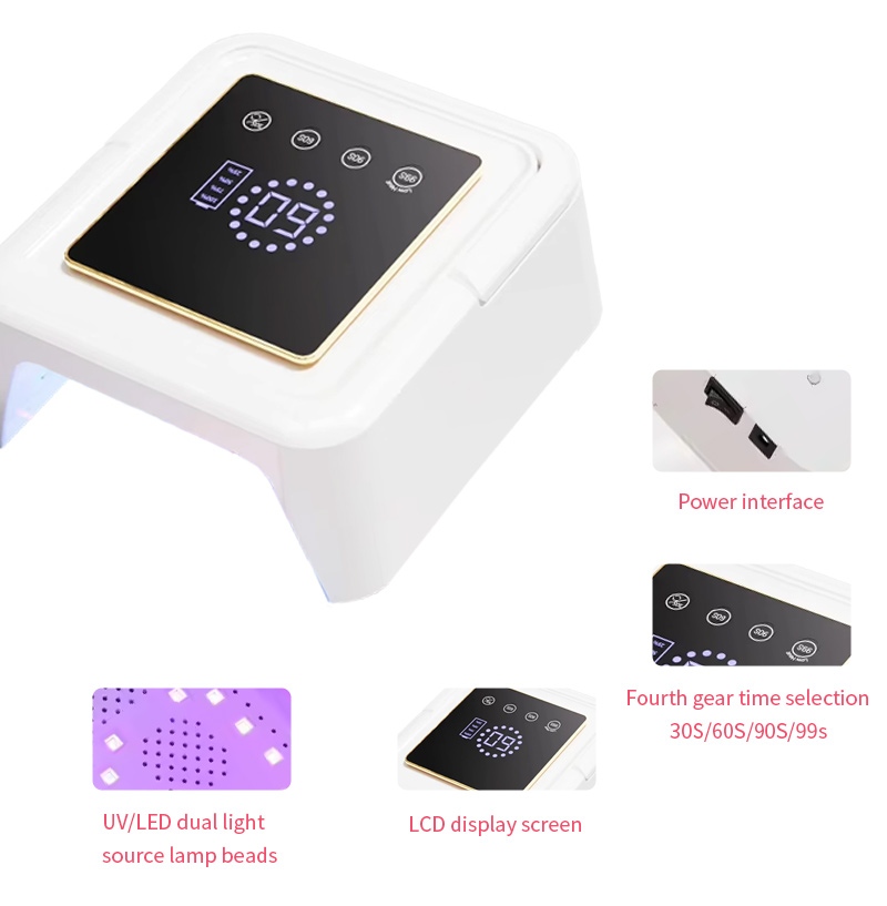Kwadratowa lampa do suszenia paznokci zapewnia równomierne wysychanie kleju bez skurczu. Podwójne źródła światła zapewniają delikatne ogrzewanie, aby zapobiec przebarwieniom dłoni i zmęczeniu oczu, odpowiednie zarówno dla dłoni, jak i stóp, zapewniając niezwykle szybkie rezultaty suszenia.