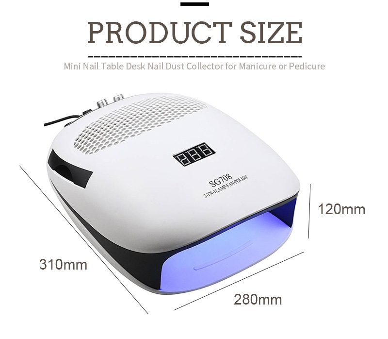 Wymiary ręcznej lampki do paznokci z poduszką potrójnej kombinacji to 310 mm długości, 280 mm szerokości i 120 mm wysokości, przy dużej pojemności i możliwości używania zarówno dłoni, jak i stóp, co jest bardzo wygodne.