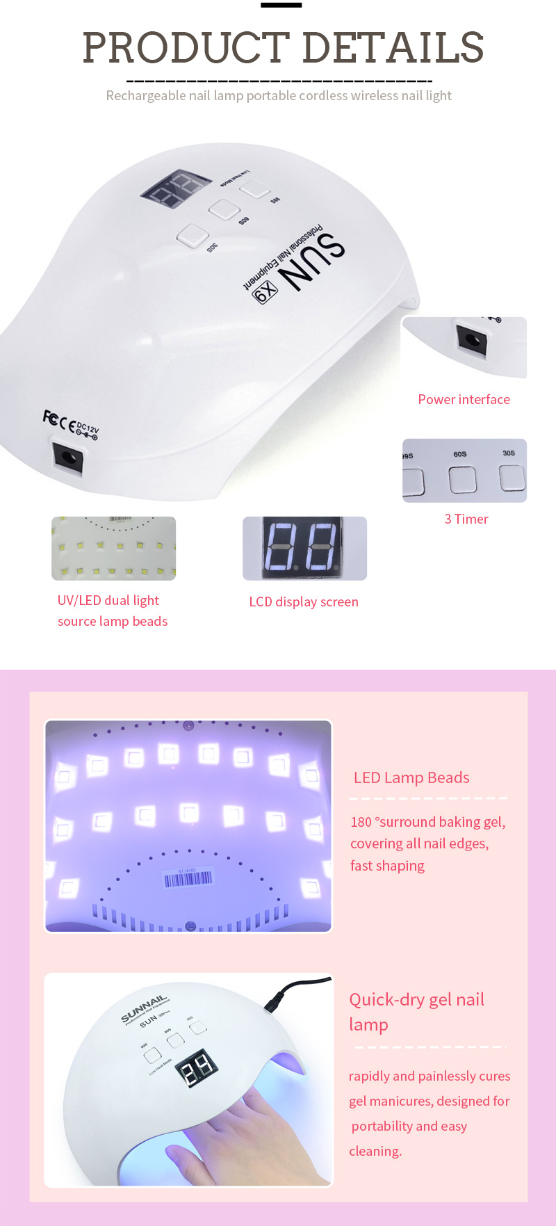 Akumulatorowa suszarka do paznokci Lampa UV do paznokci 72w